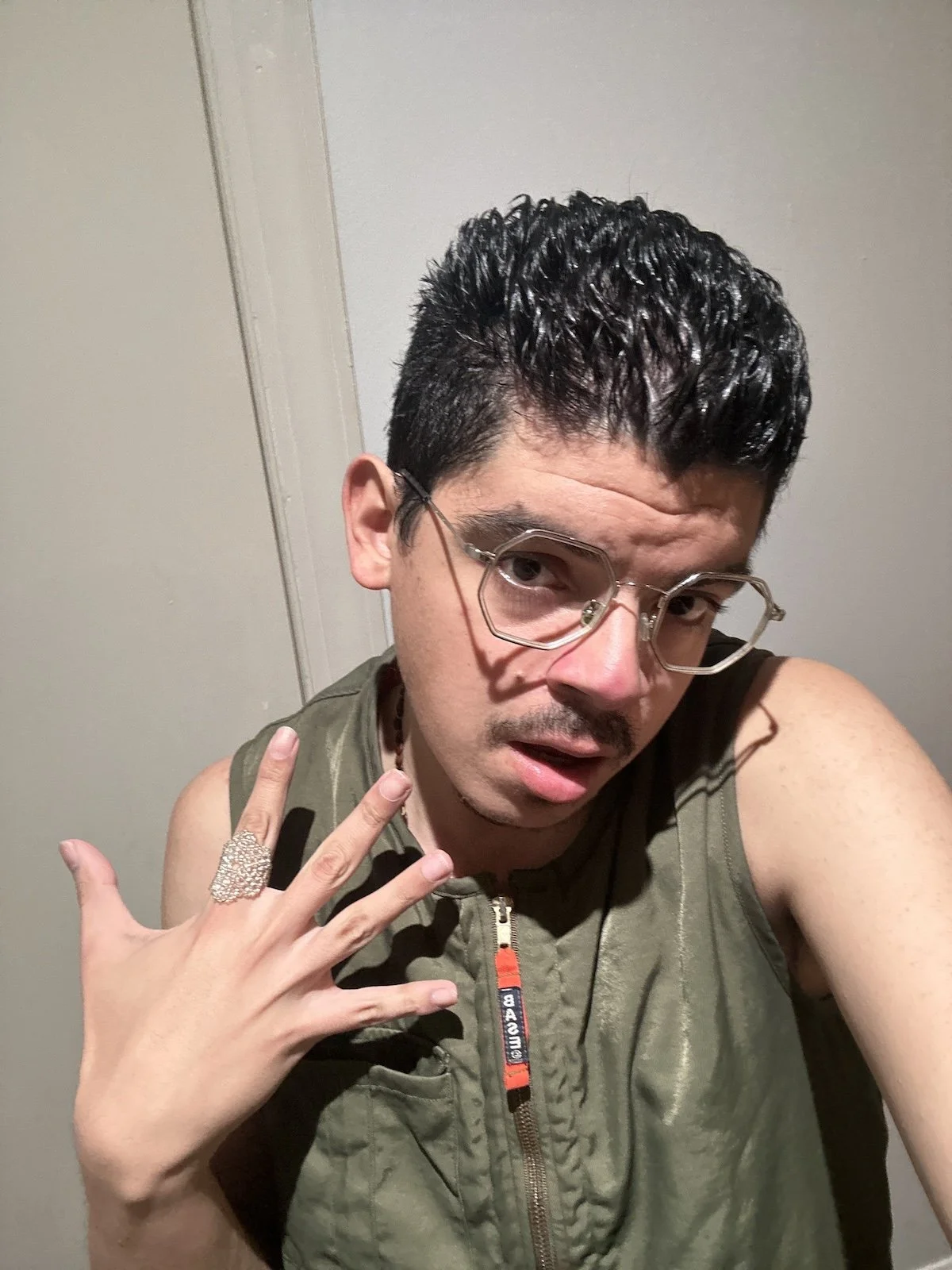 A few years later Pujol moved to NYC despite a rejection from the Tisch School of the Arts. Instead, they enrolled in classes to study improv at the Upright Citizens Brigade. Pujol would then go on to perform improv in Spanish on a team called Gato Culo before cofounding Glory W(hole). We had a buzzing need to create a space where queer comedians of color could get their feet wet for the first time, without a sea of Anglo gays as hosts or the dominant population at open mics or shows.