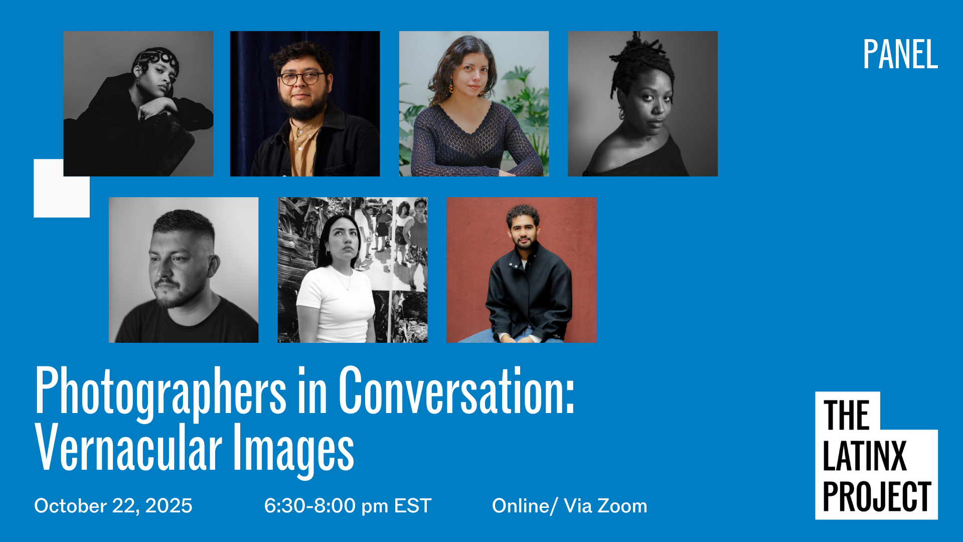 Please join us on Wednesday, October 22, 2025 at 6:30pm for "Photographers in Conversation: Vernacular Images." This panel discussion features the artists of Escenas--Andina Marie Osorio, Ashley Peña, Damon Casarez, Diana Guerra, José Ibarra Rizo, and Steven Molina Contreras--and will be moderated by the co-curators Orlando Ochoa, Jr. and Xavier Robles Armas.