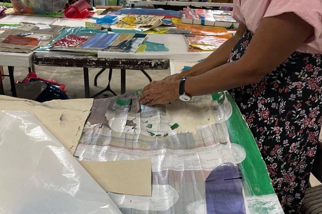 In the wake of devastation resulting from Hurricane Fiona for Puerto Rico, and the Caribbean at large, Jiménez’s most recent works are clairvoyant, as they decolonially abstract the disaster of coloniality in Puerto Rico from the depolitized discourse of ‘natural disaster.’ Titled Image Schema, Jiménez’s new exhibition alongside Brianna Bass at LatchKey Gallery in New York runs from September 7 to October 23, September being the peak month of the hurricane season. In one of the featured artworks, Image Schema #1, Jiménez utilizes the stains and mold figures of artworks ruined by Hurricane Maria and repurposes them to represent the invisibility that colonization produces. As a result, Puerto Ricans are cast as unseen, only visible through traces or prints. Yet, through opaque prints on plastic surfaces, Jiménez makes visible the effects of disaster on presumptively invisible colonial subjects and enacts the immense capacity of Puerto Ricans to recraft life in response to the disaster of coloniality. Not to mention the more intense ‘natural’ disasters due to climate change caused by centuries of capitalist savagery. Of course, Jiménez does not explicitly represent her work as anti-colonial or decolonial because of her fidelity to abstraction and, further, her extraordinary reverence for craft. This is what makes Jiménez an astonishing artist, since one can find the heart of art as cathartic, critically-creative practice in abstraction. It is in the transformative space of process where the viewer, the artists, and social discourse coincide, and this intersection names the political direction. As stated by the artist in the introduction to the catalog for the exhibition IntervalOS (operating systems): Intervalos, confines y territorios:
