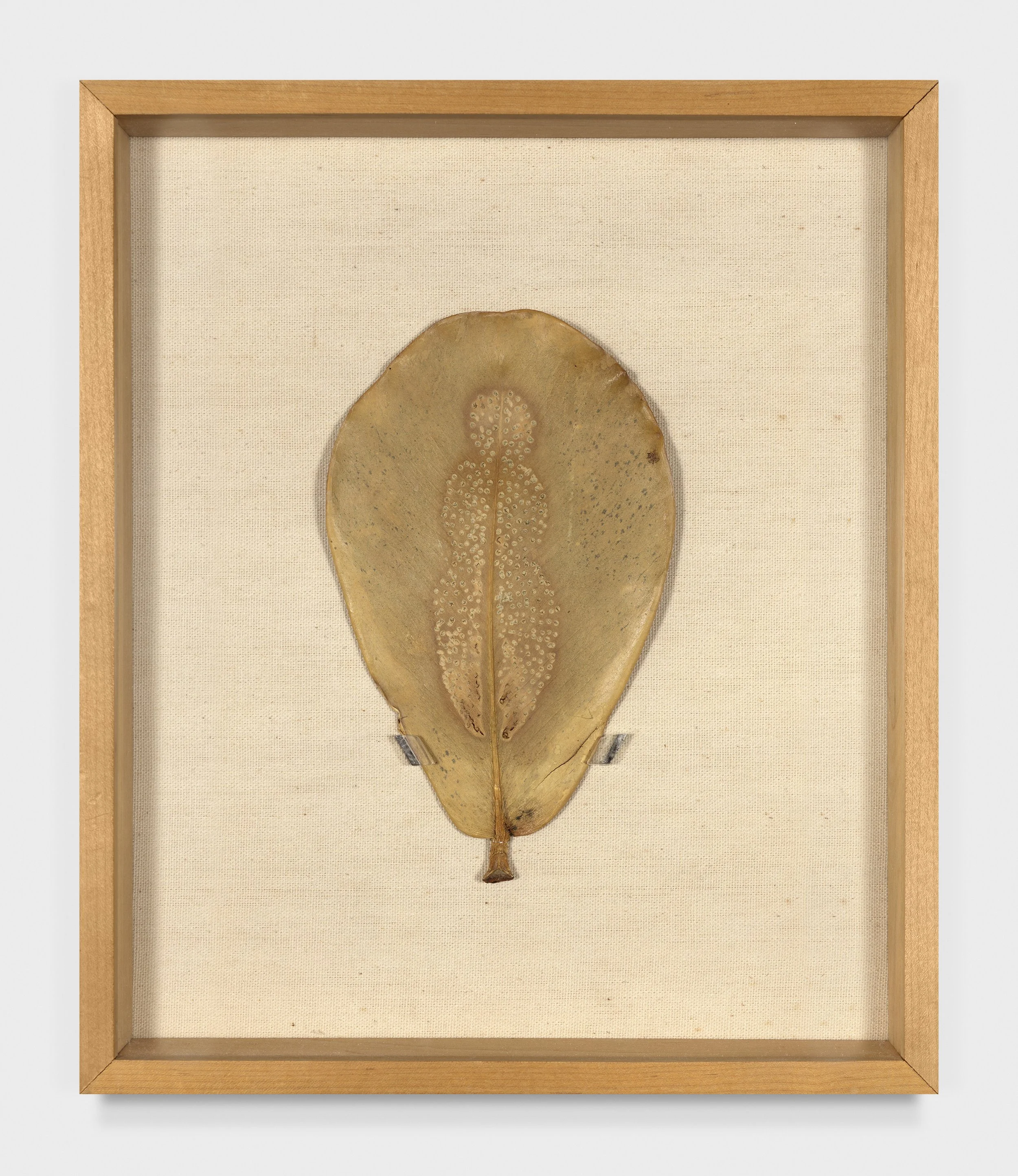 Ana Mendieta, Untitled, c. 1982. Design on leaf, Frame: 13 ¾ x 11 ½ x 2 1/12 inches. © The Estate of Ana Mendieta Collection, LLC. Licensed by Artists Rights Society (ARS), NY. Courtesy of Marian Goodman Gallery. Photo credit: Alex Yudzon.