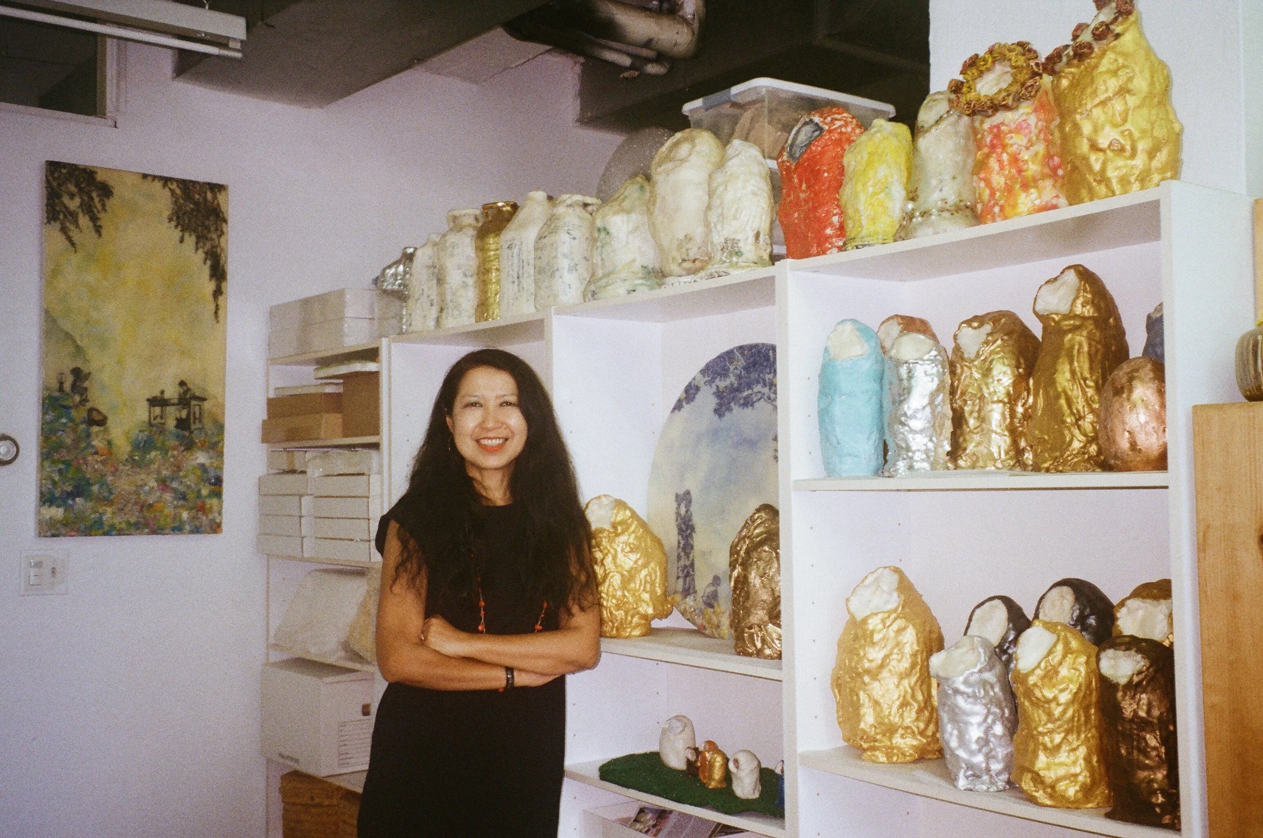 We meet on a late summer afternoon. Her paintings hang on the wall, her sculptures line a beautiful shelf, and her working table faces the window. I look around, immersed in the space and the amusement of entering her world while she grabs water and cookies for our chat. As I sit on the couch, taking it all in, I come to realize the space is a perfect encapsulation of her Chinese-Ecuadorian-New Yorker identities.