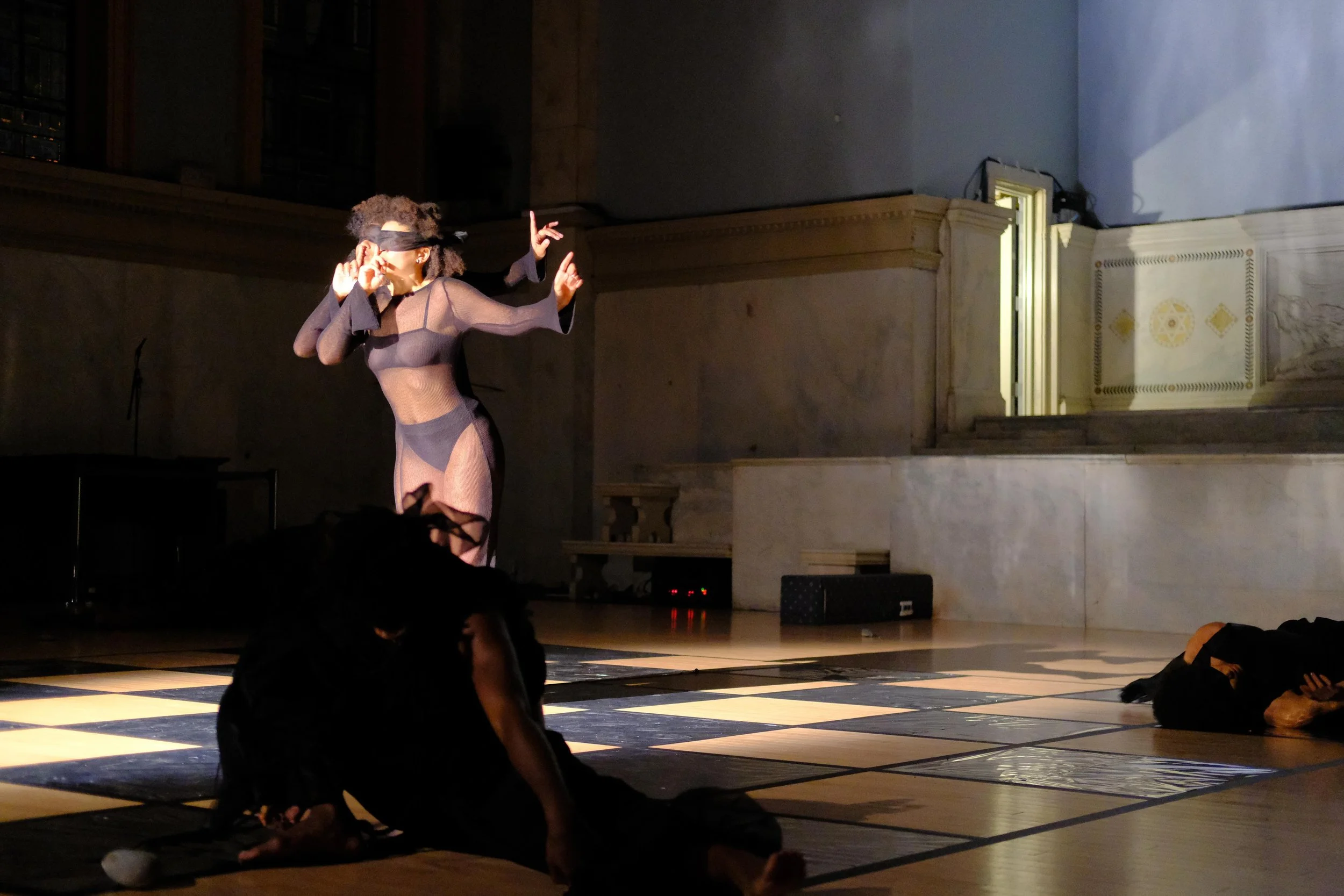 On September 10, they presented I Am Swimming with Zaza at Judson Memorial Church as part of its Black Aesthetics series. Curated by Malcolm-x Betts and Arien Wilkerson, this series powerfully centers Black performance work within a historically white avant-garde space. To encounter the piece within this framework was to witness Villa’s personal and ancestral research staged inside another layered history—just steps away from Washington Square Park on NYU’s campus. Judson, a home for postmodern and experimental dance since the 1960s, continues to be a site where artists dismantle conventions and reimagine the body’s possibilities.