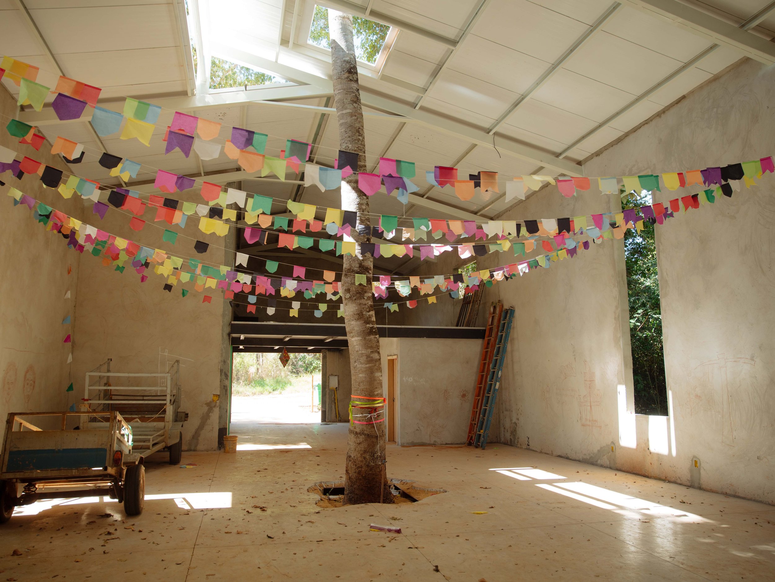 The exhibition, then, is a small time capsule that captures the spirit of Sertão Negro. In Goiânia, more than 4,000 miles from NYC, a blue door opens onto a studio and artist residency that welcomes creators from across Brazil and abroad. The site also hosts a cineclub, a capoeira group, an active kitchen, gardens, and nurseries. In the exhibition, there are several images of seeds that reference Sertão Verde, the project through which the community grows and consumes all the food produced on the property.